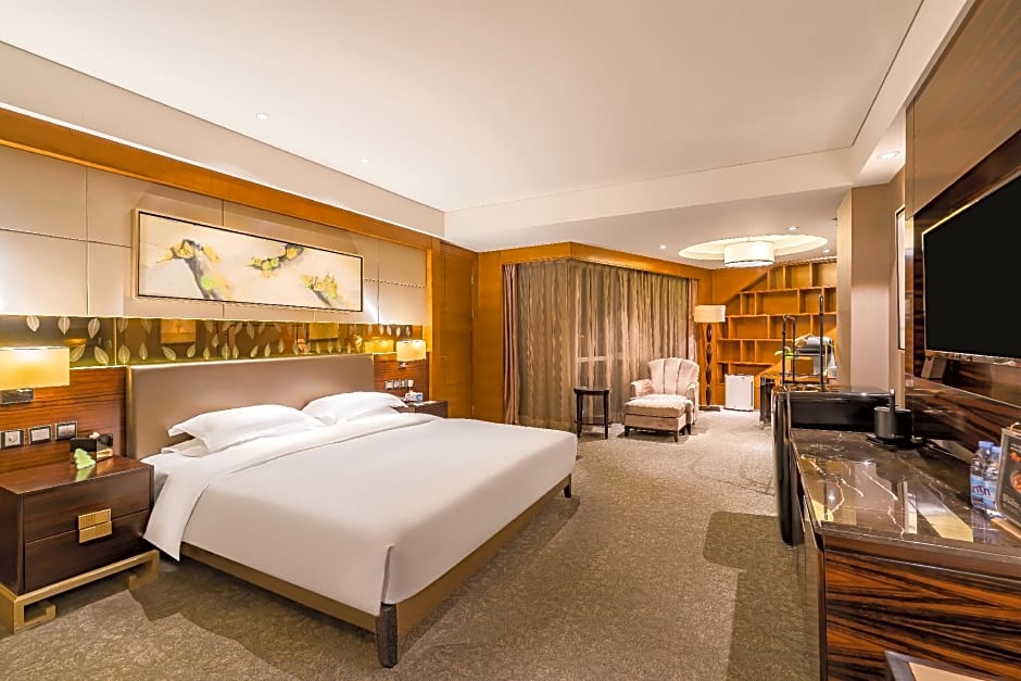 Guests will have a special experience as this suite provides a hot tub. This spacious suite includes 1 living room, 1 separate bedroom and 1 bathroom with a bath and free toiletries. The air-conditioned suite offers a flat-screen TV with cable channels, a tea and coffee maker, executive lounge access, a seating area as well as lake views. The unit has 1 bed.